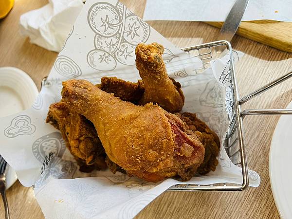 炸雞炸法和表皮類似小騎士炸雞,但調料不太一樣,沒這麼美式